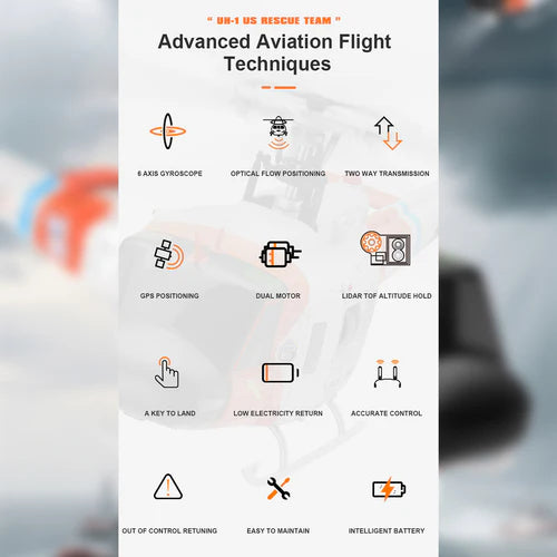 Realistic Scale Design & Stunning Lighting: Scaled down from the iconic U.S. UH-1 helicopter, this high-fidelity RC model boasts a detailed, true-to-life exterior and eye-catching LED lights. The streamlined body uses advanced injection molding for durability and realism—perfect for collectors and enthusiasts.