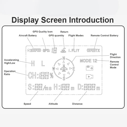 High-Performance Battery & Professional Remote: Includes 7.4V 1200mAh 25C lithium polymer battery providing 9–12 minutes of flight time and over 500 cycles of use. Built-in safety protections like overcharge, over-discharge, and low voltage warning. Paired with a professional 8CH 2.4GHz transmitter featuring 1024-level precision, HD screen, and real-time telemetry feedback—monitor battery level, speed, altitude, distance, and GPS status with ease.