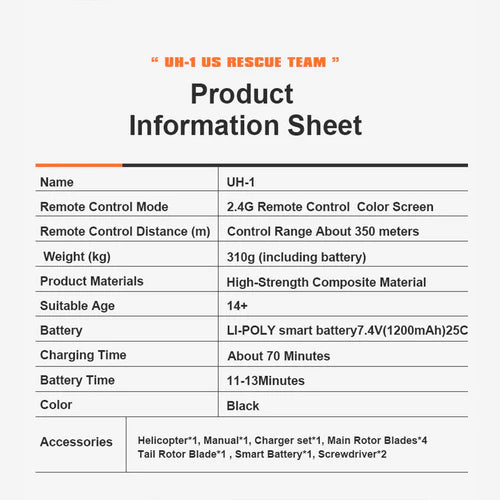 - tem No.: F07S (UH-1 6-CH intelligent 6G flybarless scale (Huey) helicopter GPS version)